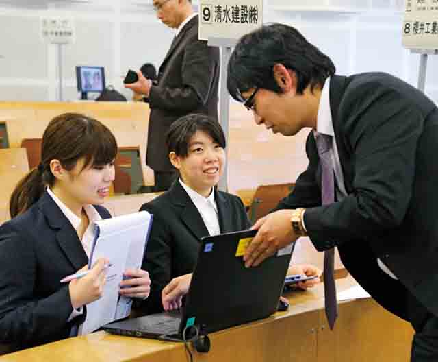 入学時から始まるキャリア教育 “就職活動って何をすればいいのだろう”と不安を持ちながら入学してくる新入生。NBUでは、入学時より様々な角度から就職対策プログラムを学年ごとに展開。“就職活動”に必要な知識や能力を段階的に身につけ、内定に向けて一つひとつの目標を確実にクリアしていきます。 「就職」に関する講座で単位認定 就職活動で必要なスキルを身につけるために、3年次を対象に筆記試験対策を行う「就職講座」、履歴書・面接対策やマナー講習、企業の採用担当者を招いての講演などを行う「就職活動実践講座」を授業として実施。また、「インターンシップ」も単位に認定されます。 インターンシップ・ 企業研修で現場を実感 全学年を対象に、社会人基礎力の向上や職業観の育成を目的としたインターンシップの推進、企業研修・取材などを行っています。仕事の現場を体感することは、就職活動においてのマナーの習得や業界研究に役立ちます。 学内で開催される 就職イベントが充実 県内外から約100社の企業がNBUの学生のために集まる「NBU業界・企業研究勉強会」を開催。各企業の採用担当者から、業界や企業の仕事内容の説明が受けられる機会です。その他、数十社が参加する企業相談会や、年間50社を超える個別の会社説明会・選考会も随時開催。また、各業界で活躍する企業の方を招いた講演会も充実しています。 学生情報を把握した個別サポート 学生一人ひとりの志望、意欲、活動状況、悩み等の情報を教職員が共有することによって、学生の成長・志望に合わせ、面接や履歴書の添削などのサポートを個別に行います。 就職情報メール配信システム 本学には全国から様々な業種の求人・説明会情報が届くため、それらの情報を希望者にリアルタイムでメール配信しています。 就職活動のマニュアル本や DVDの貸出制度 就職試験対策のマニュアル本やDVDの貸出を行い、授業のない時間や、放課後などの自由な時間を使い、自分のペースでしっかり対策ができる環境を整備しています。 交通費削減サポート 無料就職支援バスの運行 大規模な説明会は福岡市内で開催されることが多いため、交通費が大きな負担となります。本学では、主要な説明会には大学バスを無料運行。就職専任スタッフも同行することで、学生の負担と不安を軽減しています。 女子学生向け就職サポート 女子学生の就職活動を強力にバックアップする特別プログラムを実施。専門家による講演会、マナー講習、メイクアップ講習などを通じて、内定を獲得するために必要なノウハウを身につけます。 内定後もフォローアップ セミナーでサポート 内定獲得後も社会や企業で必要となる就業観や基本マナーを身につけることを目的としたフォローアップセミナーを実施。社会人生活をスムーズにスタートできるように卒業までサポートします。