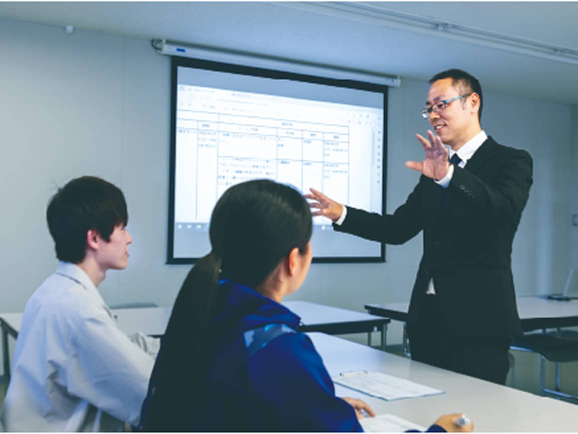 実際の企業の売上高などの数値情報から、経営の実態を把握し、課題解決に向けた提案を行う実践型教育を推進。立案した経営戦略は、財務諸表や競合企業の情報なども踏まえたリアルな内容で、モデルにした企業の担当者にプレゼンテーションをし実践力を養います。