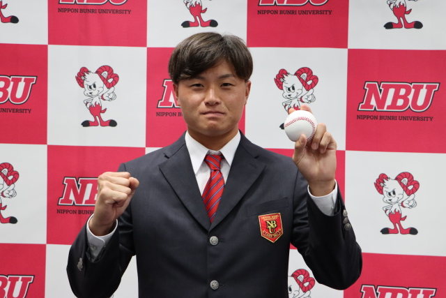 2022年10月20日(木)に行われた、「2022年プロ野球ドラフト会議」において、本学硬式野球部の前田 純投手が、福岡ソフトバンクホークスより育成10位で指名を受けました。前田投手は、指名後、「とても嬉しい。支配下登録されるように頑張りたい。」と指名を受けた感想を話し、角度を活かした投球を武器に「一軍に上がって先発ローテを目指したい」とプロでの抱負を語りました。