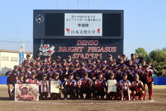 本学女子ソフトボール部が2025年8月29日(金)~31日(日)に愛知県安城市にて開催された「第60回全日本大学女子ソフトボール大会(全日本インカレ)」において、準優勝の成績をおさめました。【大会結果】(1回戦) NBU 3-2 大阪大谷大学(2回戦) NBU 2-1 富士大学(準々決勝) NBU 2-1 山梨学院大学 ※延長8回タイブレーク(準決勝) NBU 1-0 金沢学院大学 ※延長8回タイブレーク(決勝) NBU 3-4 城西大学 ※延長8回タイブレーク →大会詳細HPはこちら http://www.softball.or.jp/game/univercity_woman/tournament2025/tournament.html